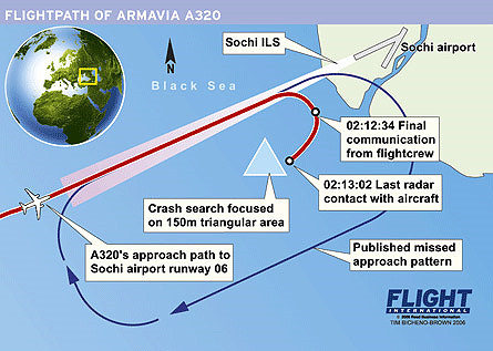 de Sotchi au bord de la Mer Noire. L’Airbus A320 se trouvait en phase d’approche ILS