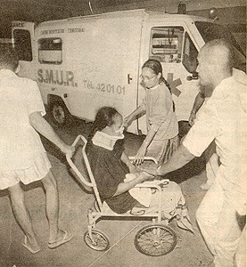 que les blessés sont transportés à l'hôpital, la boîte