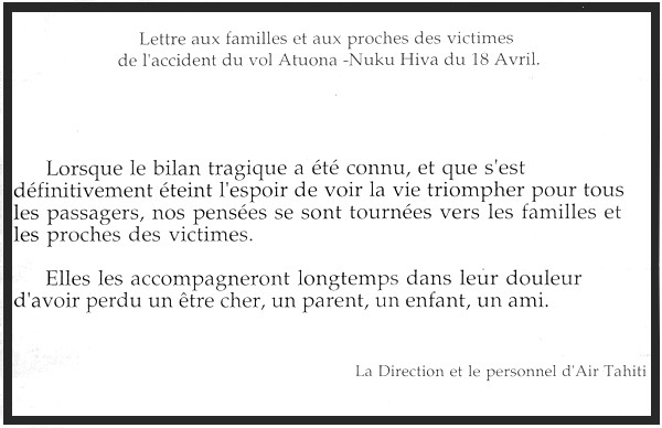Tahiti, frère jumeau du F-OHAB crashé. |