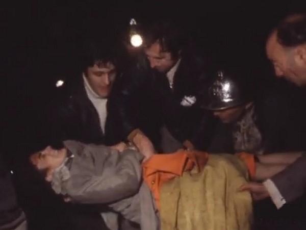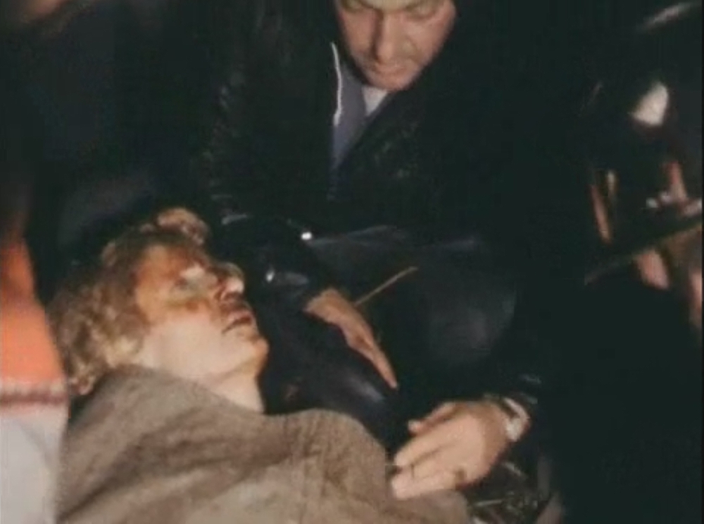 une équipe de télé et brancardiers s'agitent. Les
