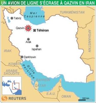 vol 7908 de Téhéran à destination de Erevan en Arménie, s'écrase un quart d'heure après son décollage