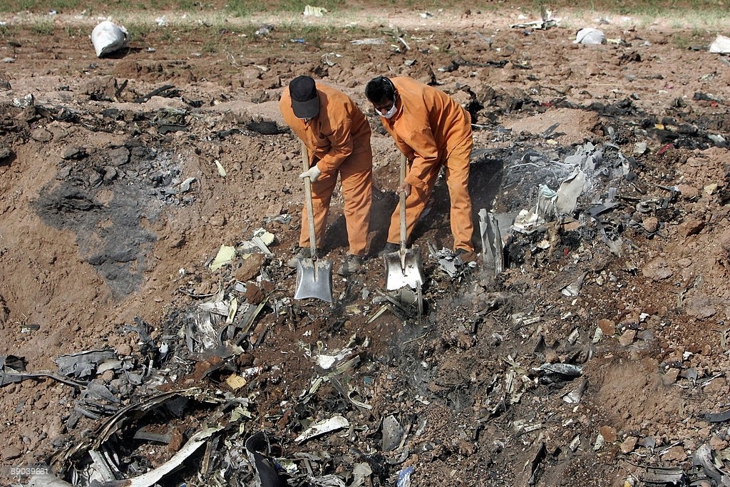 effet, il ne reste de l'avion que des morceaux de métal épars et