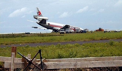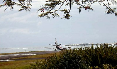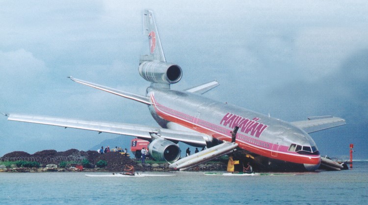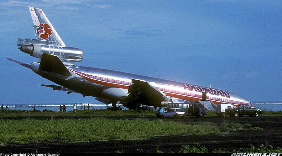 La veille de Noël, ce 24 décembre 2000, un peu avant 10h du matin, le DC10 de la compagnie "Hawaiian Airlines" N132AA en provenance de Honolulu rate son atterrissage à Tahiti-Faaa et termine sa course dans le lagon, face au port. De forts orages avaient perturbé l'approche et l'avion s'était posé bien au delà du seuil de piste. Aucune victime n'est à déplorer.