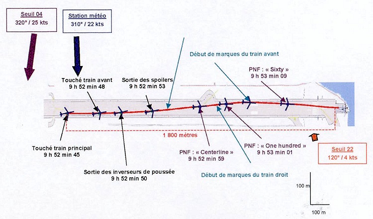 L’ensemble de ces facteurs a décalé le toucher des roues d’environ neuf cents mètres vers la mi-piste.