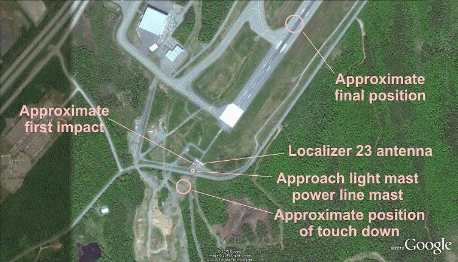 l'impact, l'aéronef a percuté une antenne du radiophare