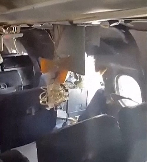 On distingue bien que les dégâts sont circonscrits à une petite zone. La faible pressurisation de la cabine a limité les effets destructeurs du souffle de l'explosion.
