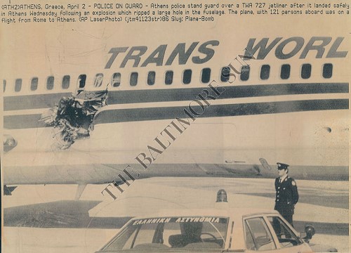 En 1986, une bombe d'à peine 500g de plastic explose dans un B727 de la TWA au dessus de la Grèce en phase d'atterrissage à Athènes occasionnant un trou de plus de 2 m² et une rapide décompression qui va tuer quatre passagers dont un enfant. L'avion arrive à se poser sans autre problème sauvant les 110 autres passagers.