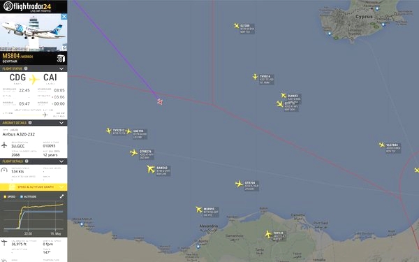 Le vol 804 est parfaitement identifié et il vient à peine d'entrer dans l'espace aérien égyptien  lorsqu'il disparait.