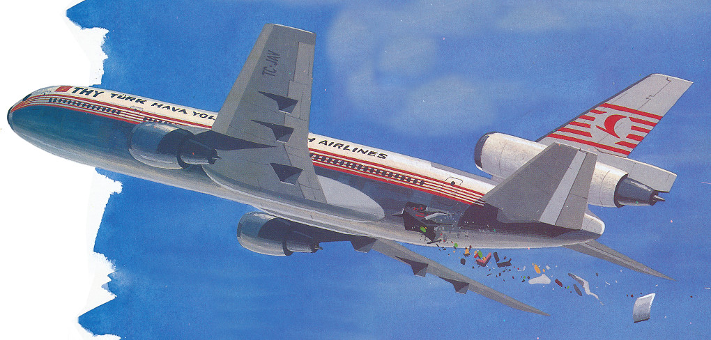 L'enquête va rapidement découvrir que la porte arrière gauche de la soute s'est ouverte en vol suite à son mauvais verrouillage (la pression de l'air sur la surface de la porte atteignait 5t). La décompression brutale de la soute a déformé toute la partie arrière du plancher de la cabine et a attiré vers l'extérieur deux rangées de sièges avec leur 6 passagers. Les commandes de vol des gouvernes et du moteur central qui passaient dans l'épaisseur du plancher ont été arrachées rendant l'avion impilotable et entrainant sa chute à plus de 600 km/h.