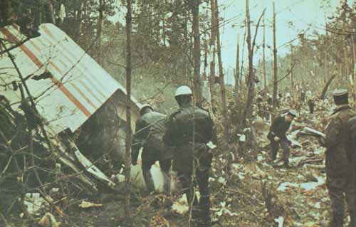 L’horreur ! De très nombreux sauveteurs ont convergé peu à peu dans cette clairière infernale entièrement créée par la chute de l’avion. C’est ce qui m’a, personnellement, le plus impressionné. C’était comme si une immense faux avait abattu des milliers d’arbres d’un seul coup, laissant derrière elle une impressionnante