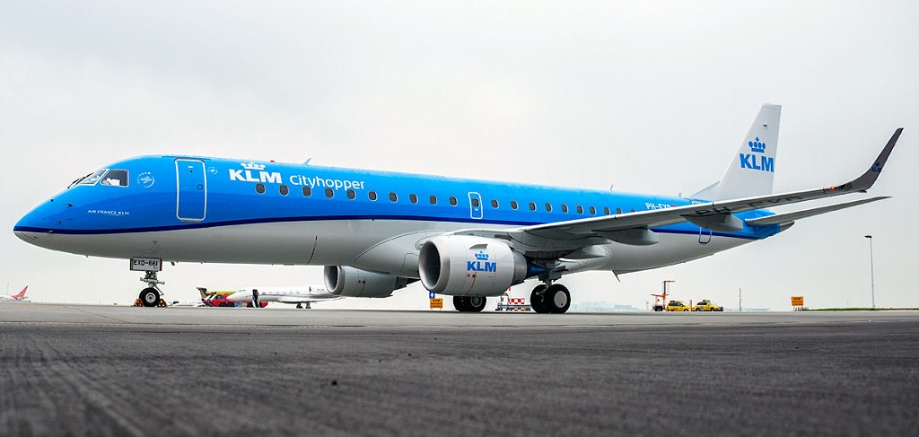 encore sur le taxiway D, l'EMB 190 de KLM CityHopper pour