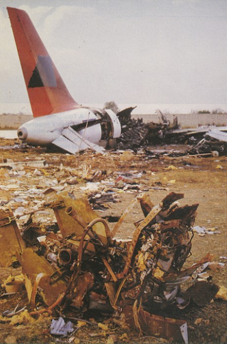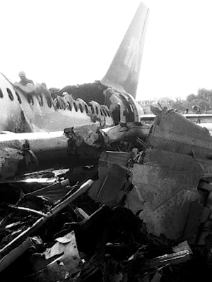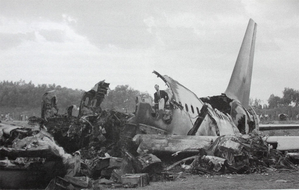 L'avion est détruit par l'impact et par le feu.