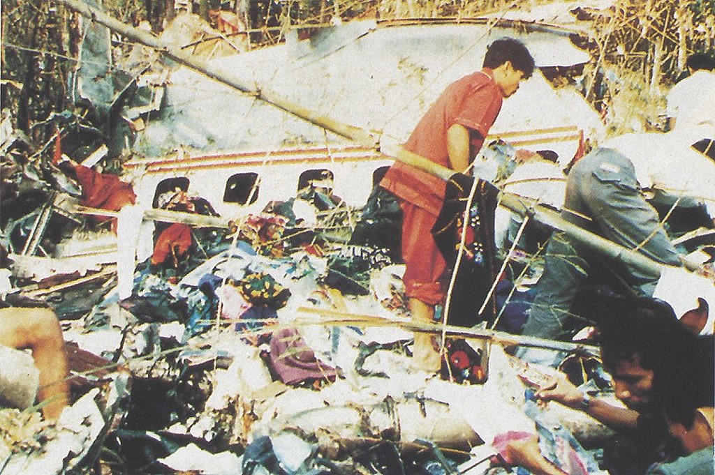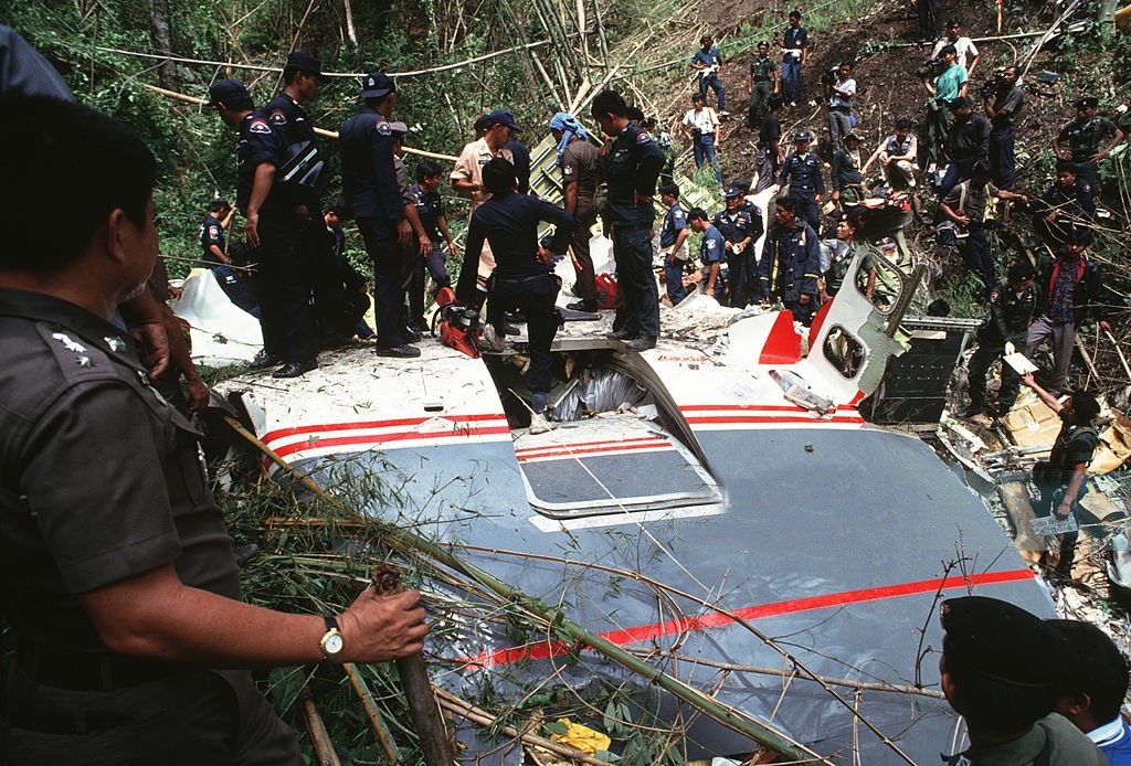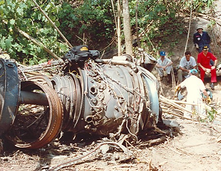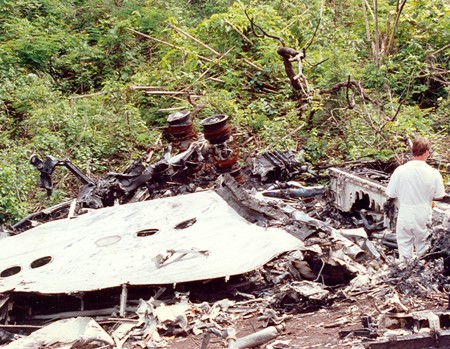 inspecte les débris de l'avion qui s'est désintégré en plein vol |
