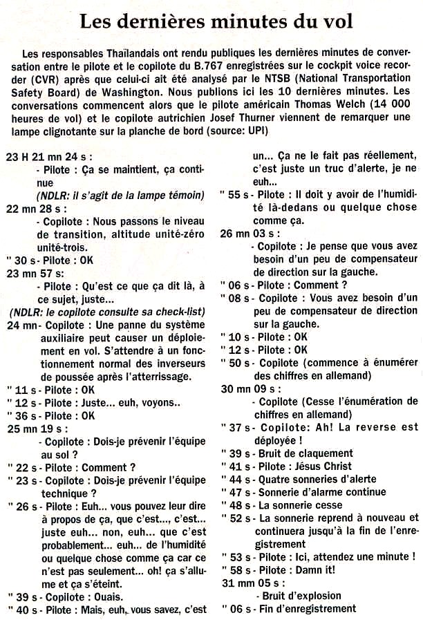 Air, Niki Lauda lui-même. Elle fut longue car le FDR, la boîte noire