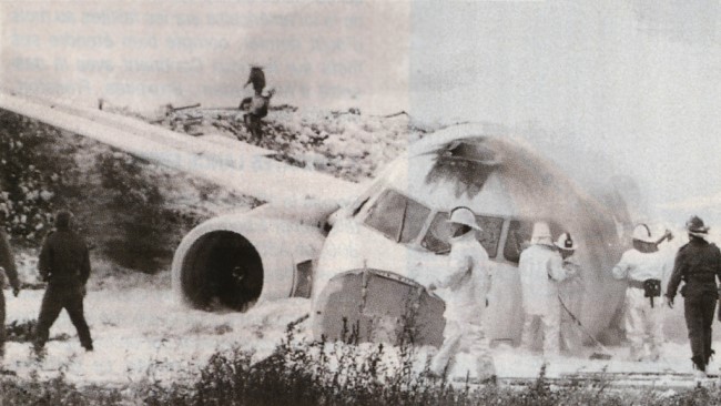 l'autre coté. Bilan: 2 morts dont le Commandant de bord et 45 blessés. Le pilote