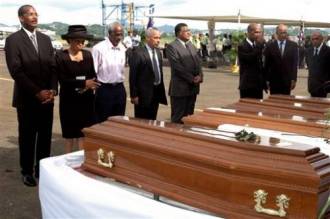 l'île étaient présentes pour l'arrivée des corps.
