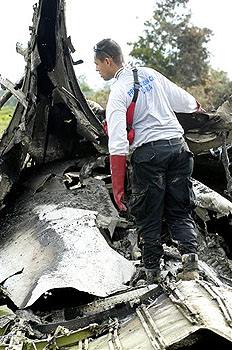 L'appareil est déchiqueté et éparpillé sur une large zone