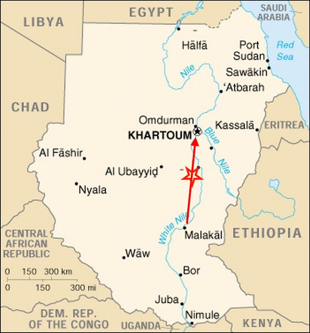 Malakal (dans l'actuel Soudan du Sud ) à Khartoum au Soudan , quand