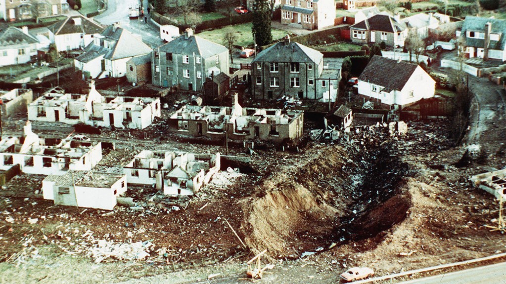 en plein vol au dessus de la commune de Lockerbie, en Écosse.