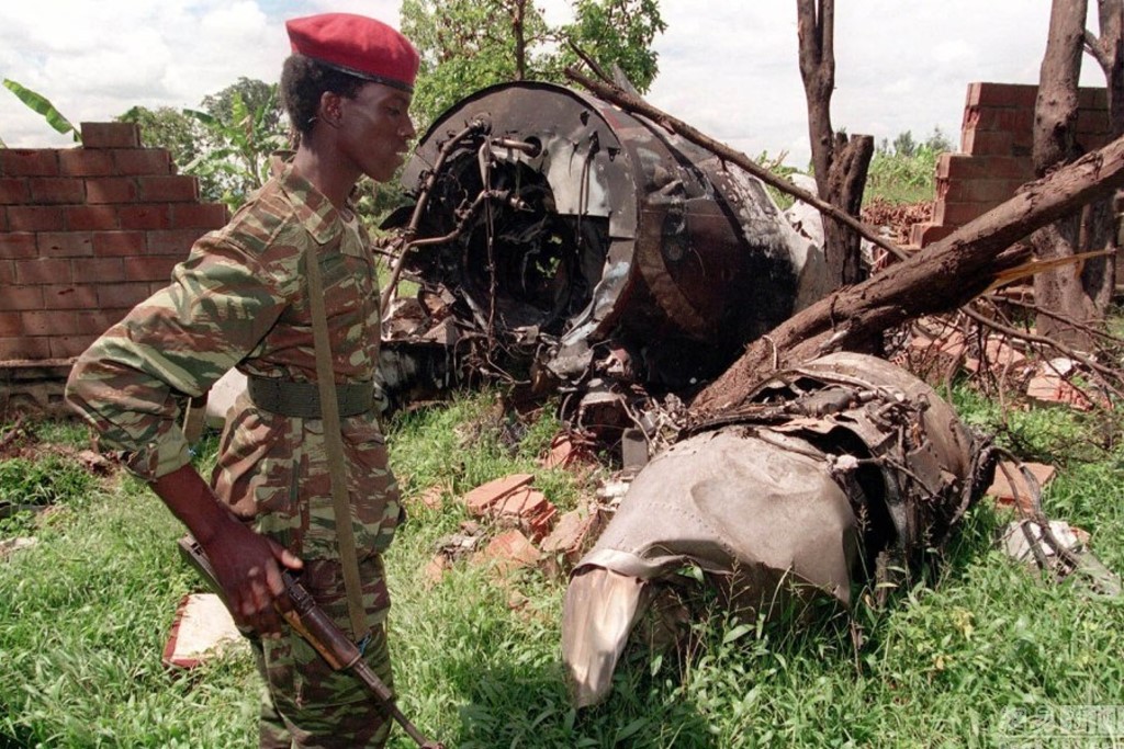 rwandais FPR, est abattu au-dessus de Kigali par un (ou deux?) missiles