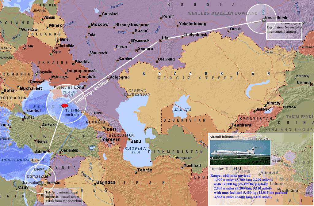 et alors qu'il vole à 36000 ft. L'avion tombe dans la Mer Noire par