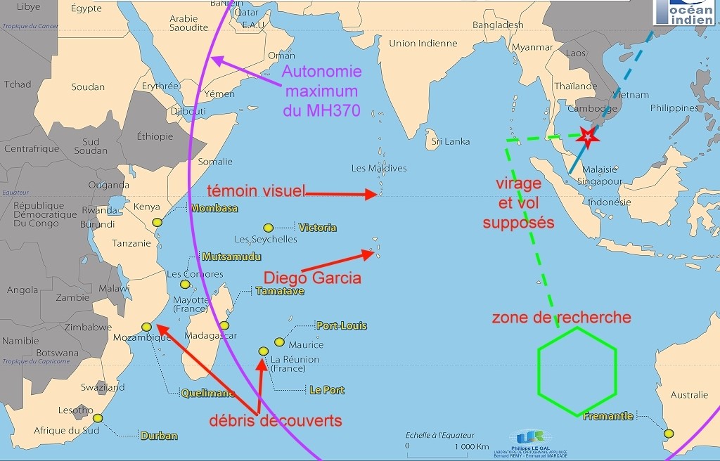 correspondrait avec l'autonomie et les horaires du MH370. Quelques